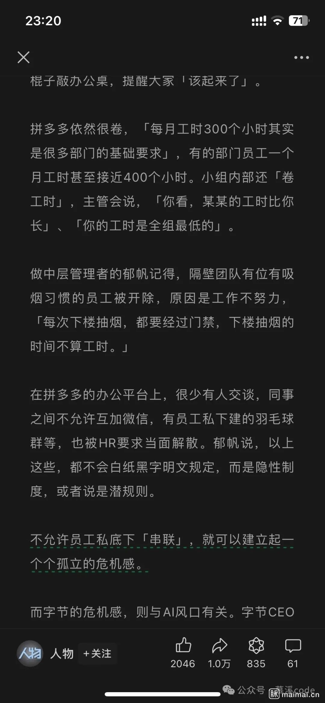 🏢卷王之王?拼多多员工爆料:每月工时300小时起步,同事间不准加微信!