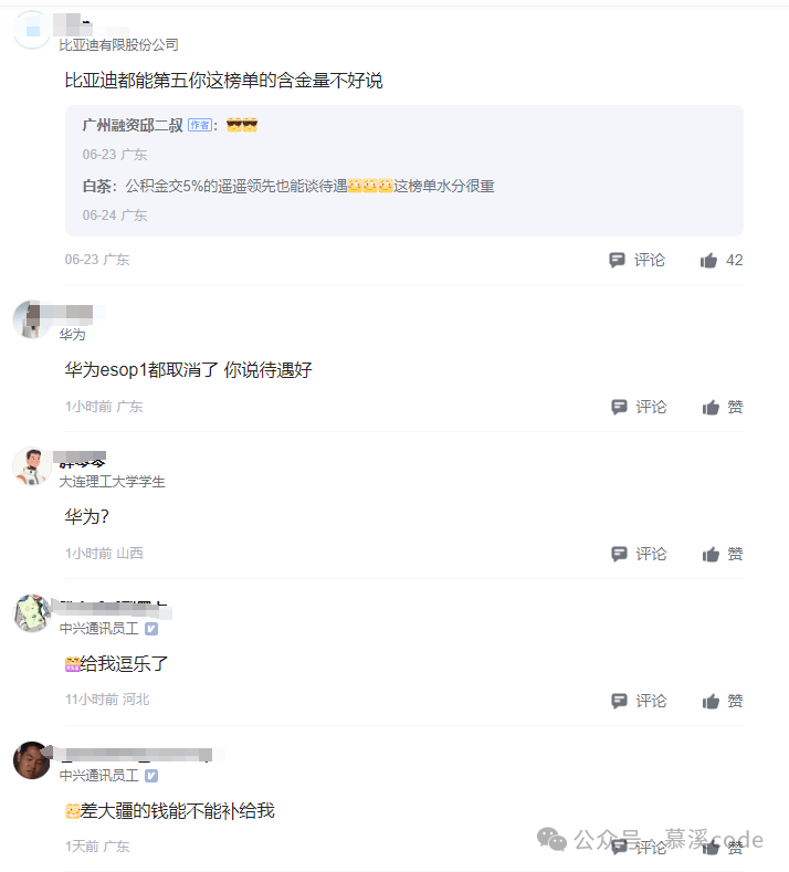 “比亚迪的待遇在深圳也能排前五?怕不是在逗我吧?”一位比亚迪员工在评论区吐槽道。