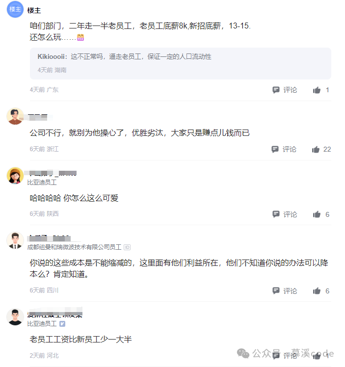 这位员工还吐槽说,比亚迪很多领导在公司呆的时间太久了,已经跟不上时代的发展,不学习新技术、新标准,反而打压那些有想法、有能力的年轻人。