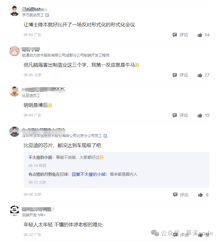 也有网友认为,比亚迪作为一家快速发展的企业,给员工的待遇和发展平台已经算不错了,这位博士的压力或许来自于自身的高期望 。