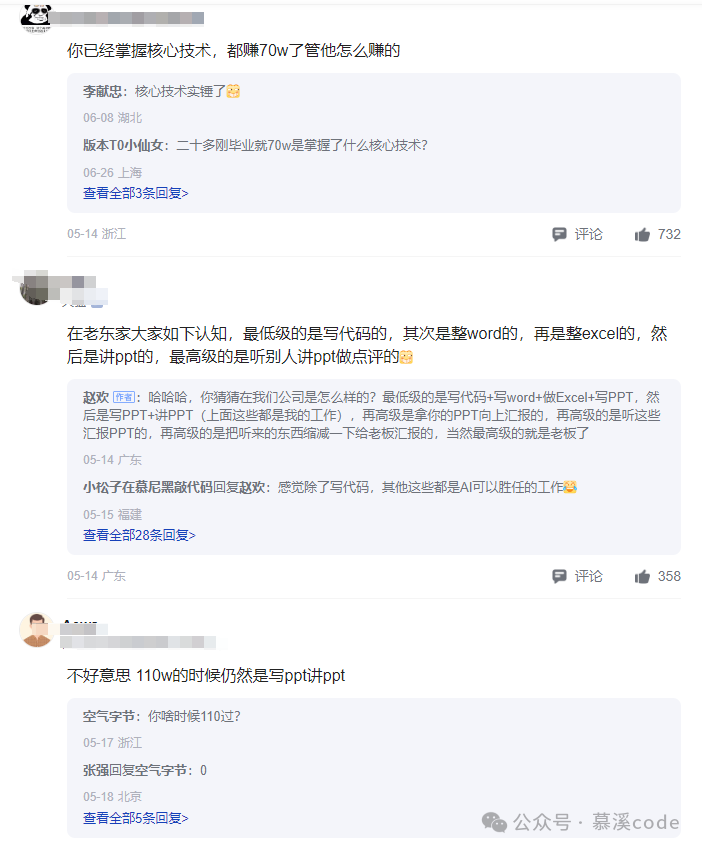 帖子一出,立即引发了网友们的热议。有人表示羡慕嫉妒恨,认为年薪70万做PPT简直是“神仙工作”;也有人对楼主表示理解,认为年轻人应该趁早提升自己的核心竞争力,不要被眼前的安逸所迷惑。