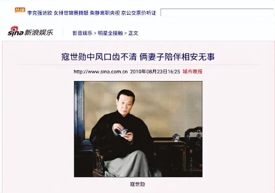 信息来源:城市晚报2010年08月23日——寇世勋中风口齿不清俩妻子陪伴相安无事