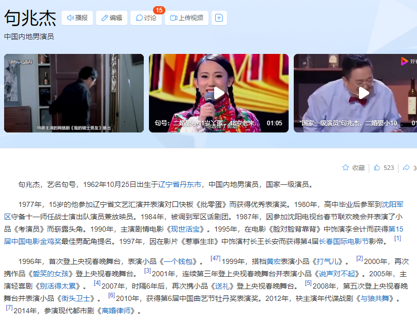 他似乎就是为了喜剧而生的一样,每次看到句号站在舞台上的时候,就莫名其妙的想笑,十分的有喜感,给很多的观众都留下了深刻的印象,他在15岁的时候就因为参加辽宁省文艺汇演,并且表演了对口快板《批零蛋》而获得了优秀表演奖。