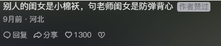 “别人的闺女是小棉袄,句老师闺女是防弹背心。”