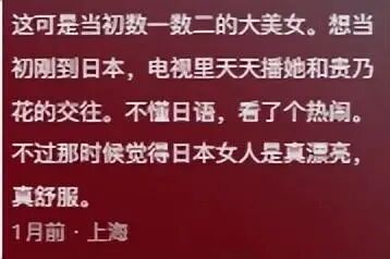 “这可是当初数一数二的大美女,想当初刚到日本,电视里天天播她和贵乃花的交往。不懂日语,看了个热闹。不过那时候觉得日本女人是真漂亮,真舒服。”