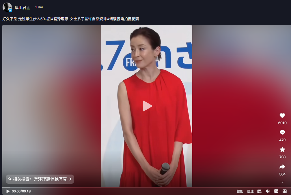在大概一个月前的时候,我们从网友发布的视频中可以看到,宫泽理惠穿着红色的长裙子亮相了,似乎是在参加一场活动,我们可以看到,宫泽理惠的年龄也越来越大了,脸上也再也没有了曾经的稚嫩,充满了岁月的痕迹。