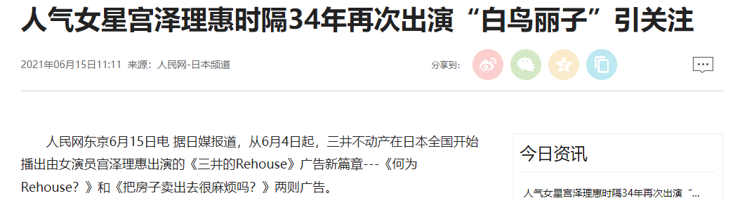 信息来源:人民网-日本频道2021年06月15日——人气女星宫泽理惠时隔34年再次出演“白鸟丽子”引关注