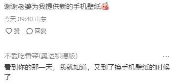 “谢谢老婆为我提供新的手机壁纸,”“看到你的那一天,我就知道,又到了换手机壁纸的时候了。”