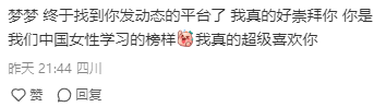 “梦梦,终于找到你发动态的平台了,我真的好崇拜你,你是我们中国女性学习的榜样,我真的超级喜欢你。”