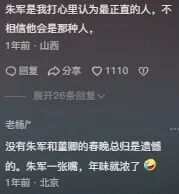 “朱军是我打心里认为最正直的人,不相信他会是那种人,”“没有朱军和董卿的春晚总归是遗憾的,朱军一张嘴,年味就浓了。”