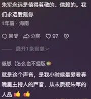 “朱军永远是值得尊敬的,信赖的,我们永远爱戴你,”“就是这个声音,是我小时候最爱看春晚里主持人的声音,从未质疑朱军的人品。”