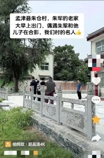 有网友发布了视频,在孟津县朱仓村偶遇了朱军,原来是朱军带着夫人和儿子回到了自己的老家,可能有很多小伙伴十分的好奇朱军不是出生在甘肃兰州吗,据说他虽然出生在甘肃兰州,但是他的祖籍在河南孟津县朱仓村,只不过不知道是真的还是假的。