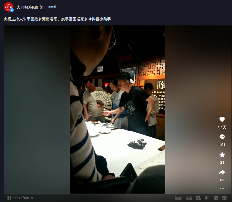 当时应该有不少网友在看到这个消息的时候都十分的震惊,其实朱军也十分的热情,在很久之前的时候,朱军回到故乡洛阳,他画了一幅画送给家乡,视频中的他穿着一件黑色的短袖,看起来十分的低调,在低调的同时也没有什么架子。