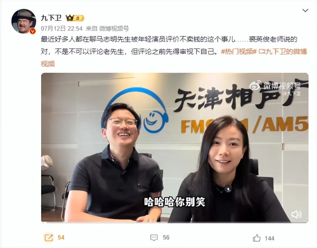 信息来源:九下卫2024年07月12日——最近好多人都在聊马志明先生被年轻演员评价不卖钱的这个事儿……裘英俊老师说的对,不是不可以评论老先生,但评论之前先得审视下自己