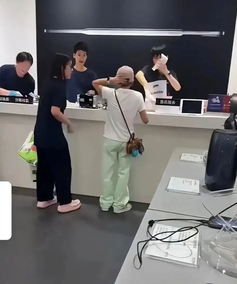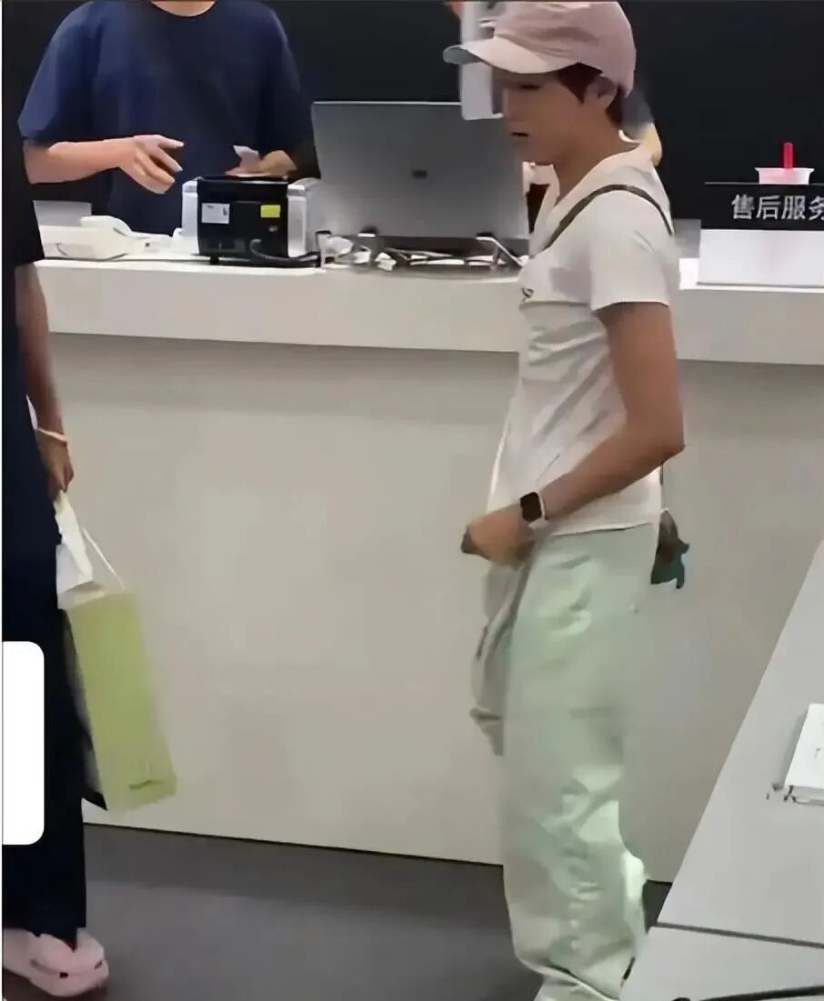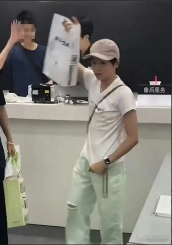 全红婵在去到店里的时候就被店里的销售人员给认出来了,我们可以看到,全红婵穿的已经很低调了,戴着一个粉色的帽子,穿着白色的半截袖,以及一个绿色的裤子。