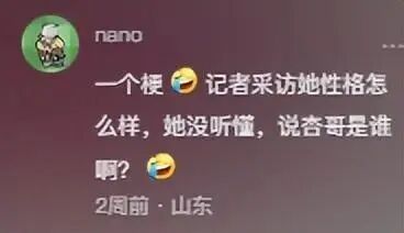 有网友回答到,“一个梗,记者采访她性格怎么样,她没听懂,说杏哥是谁啊?”