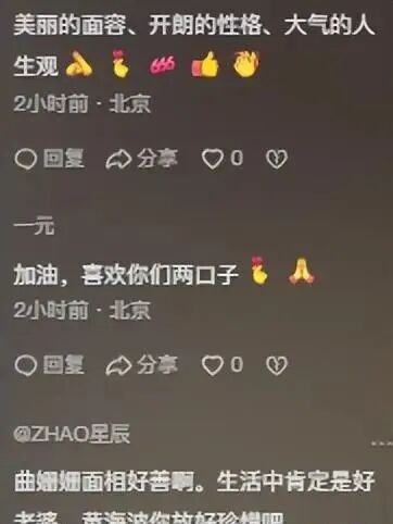 众多网友也纷纷在评论区中对曲栅栅表示了“肯定”,“曲栅栅美丽善良对黄海波不离不弃,人美人品又好。”