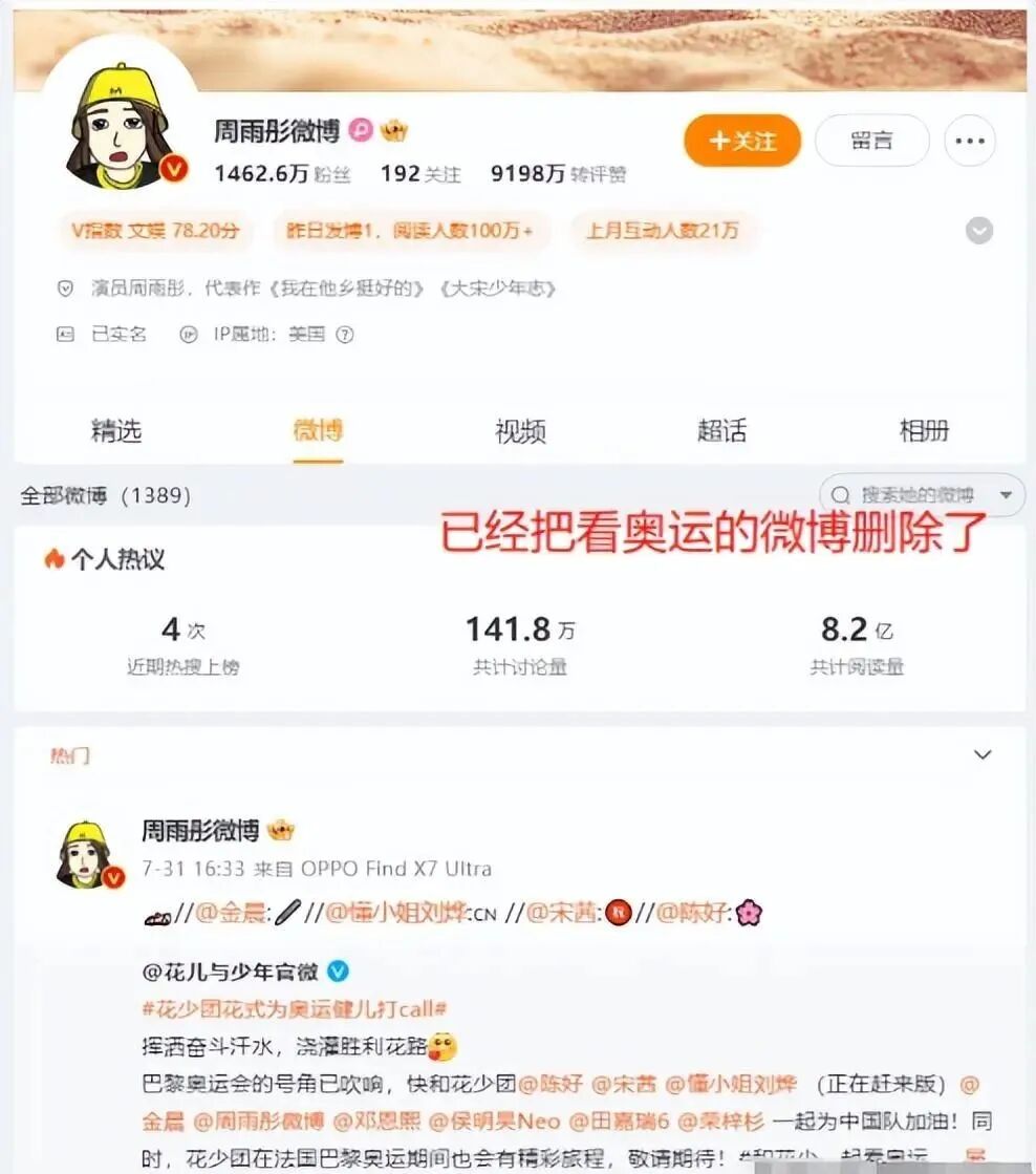 巴黎奥运会十分的火爆,有很多的明星都去到了现场,当然有些明星是为了支持中国的队伍而去的,不过也有不少的明星是为了蹭“热度”而去的,就比如说周雨彤,不懂体育还硬要蹭,直接被骂到删微博!