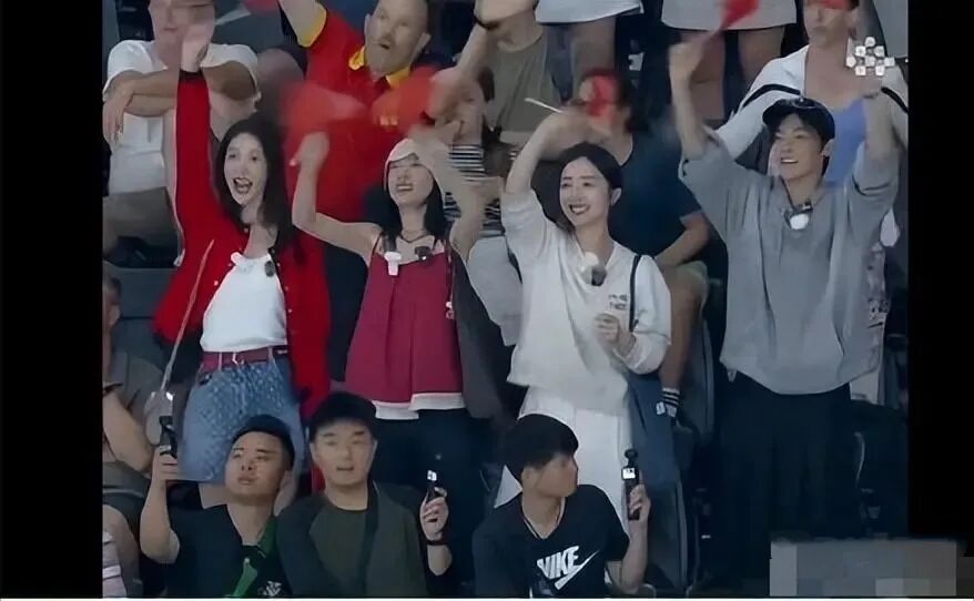 也有网友认为是金晨没有在看比赛,并且还发出了金晨也振臂欢呼的一张图片,我们从一个网友所发布的视频中可以看出,他们四个人和场边的其他观众形成了鲜明的对比。