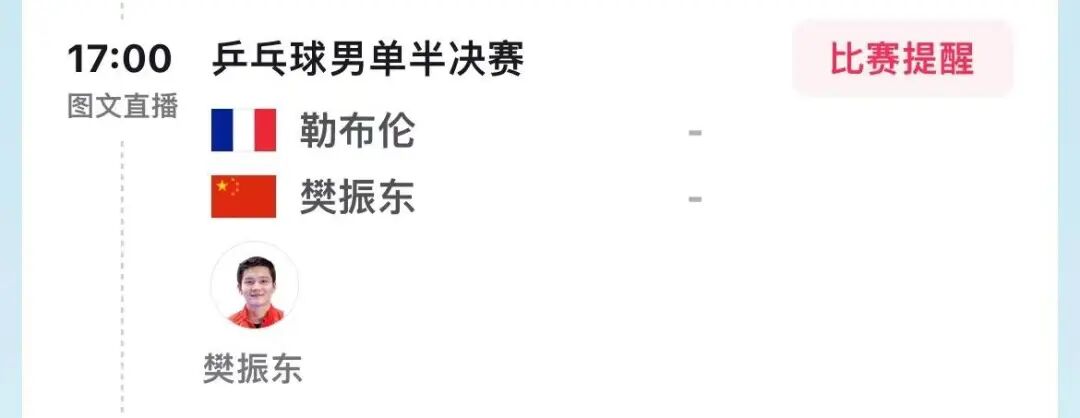最后,晋级四强的樊振东,接下来将迎来男单半决赛,对战东道主选手勒布伦,期待樊振东凯旋而归!
