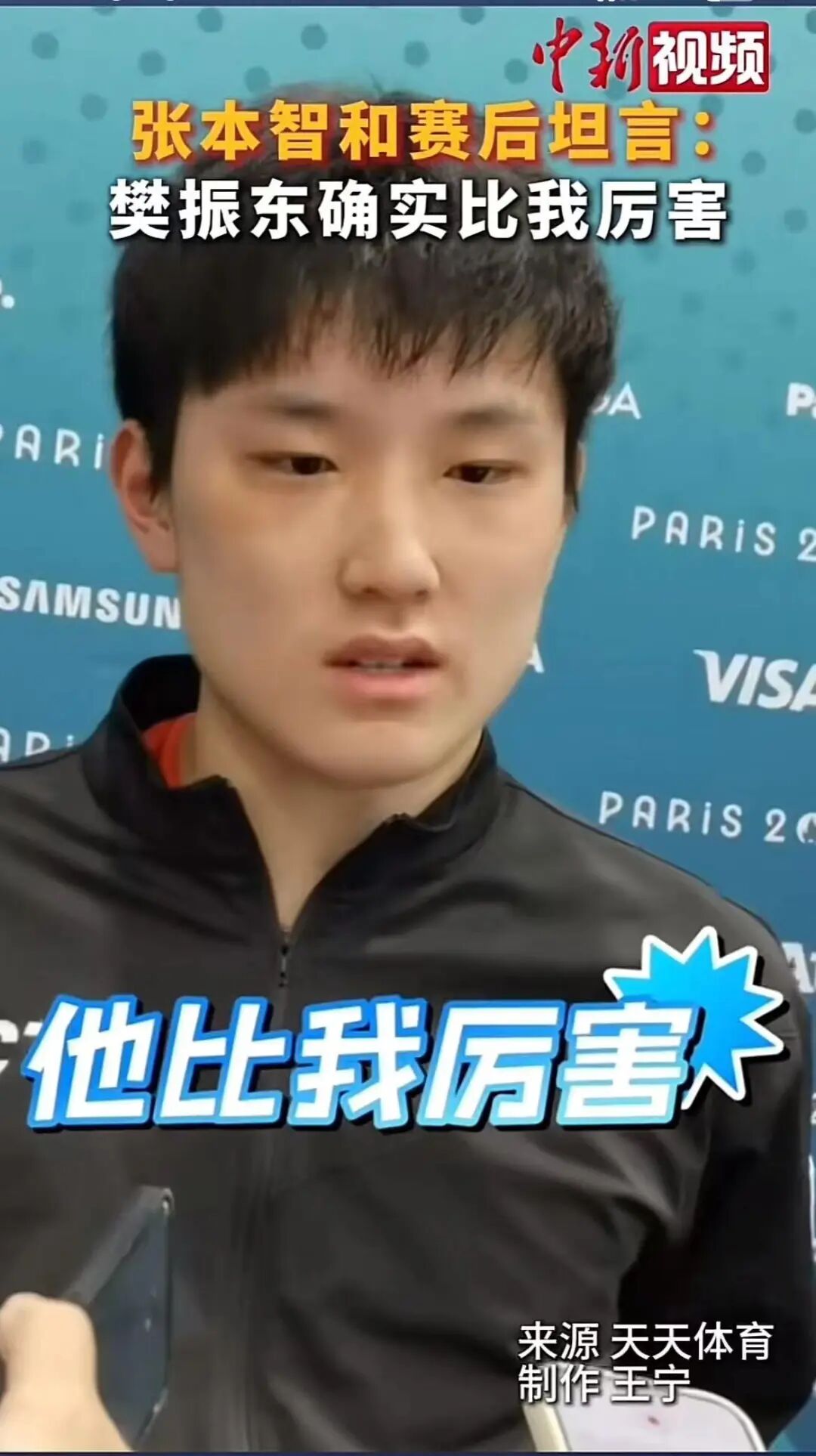 随后,张本智和还坦言,“最后的第六局、第七局,我觉得樊振东已经没有那么怕我了,我的实力这方面还是有些不够,樊振东他比我厉害”。