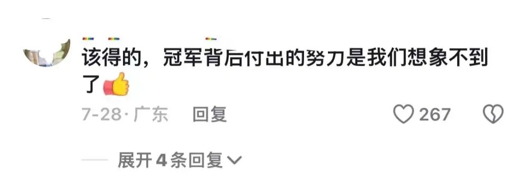 话说,这枚金牌的含金量是真的高,在巴黎赢了法国的击剑,网友们也都热烈祝贺。
