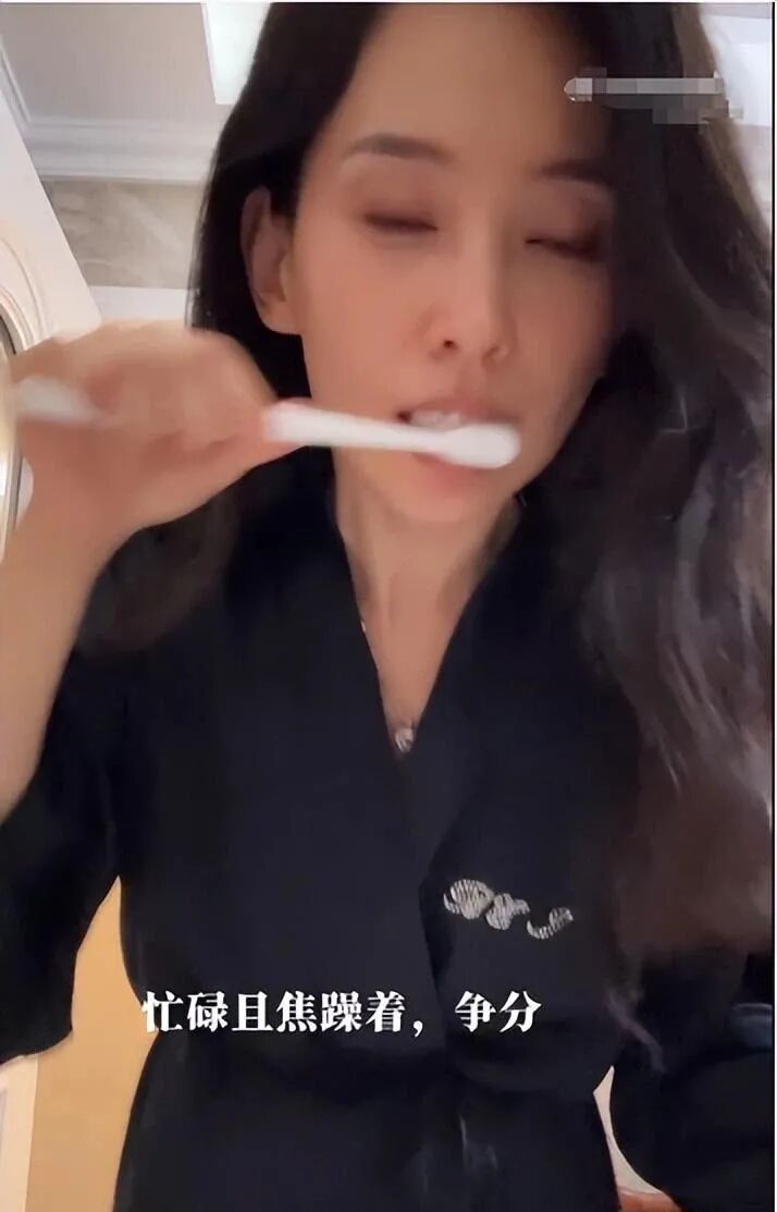那她又是如何引发争议的呢,我们可以看到,她先是穿着一件黑色的睡袍去进行洗漱,在洗完了之后就在进行保养,可能这也是她的脸看起来十分漂亮的原因之一,十分的精致。