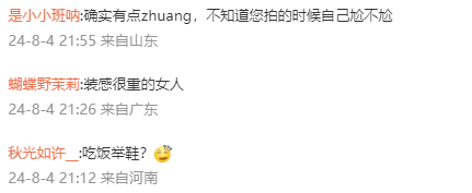 “确实有点zhuang,不知道您拍的时候自己尬不尬,”“装感很重的女人,”“吃饭举鞋?”