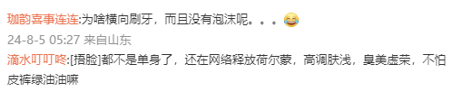 “为啥横向刷牙,而且没有泡沫呢。。。”“都不是单身了,还在网络释放荷尔蒙,高调肤浅,臭美虚荣,不怕皮裤绿油油嘛。”