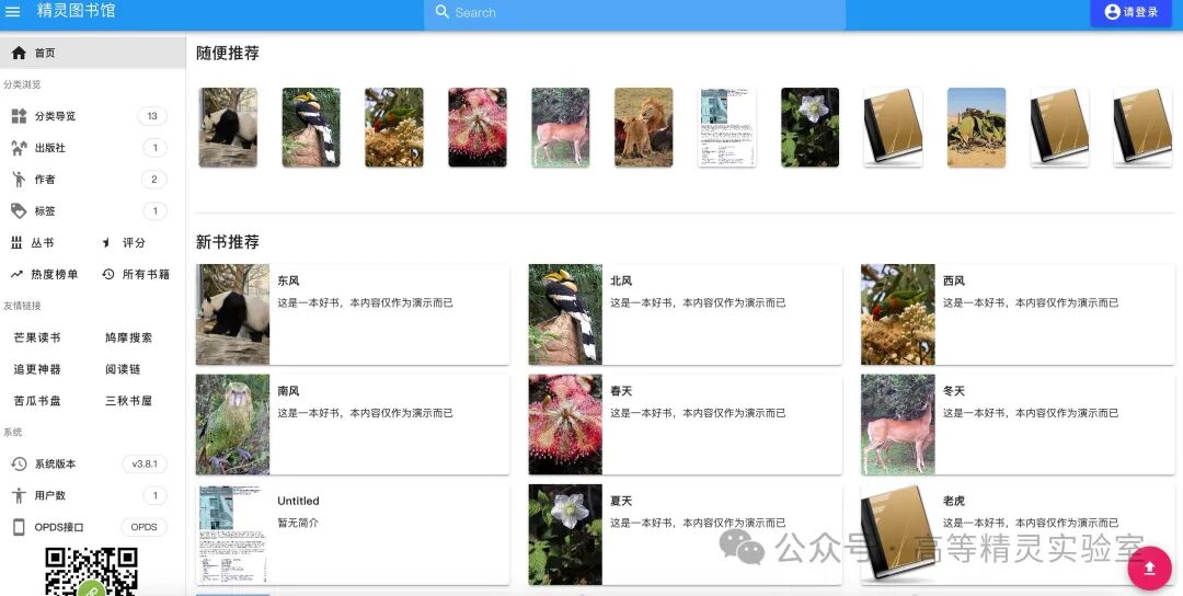 美观的界面:摒弃Calibre难用的UI界面,于是基于Vue重新开发了新的界面,支持PC访问和手机浏览;