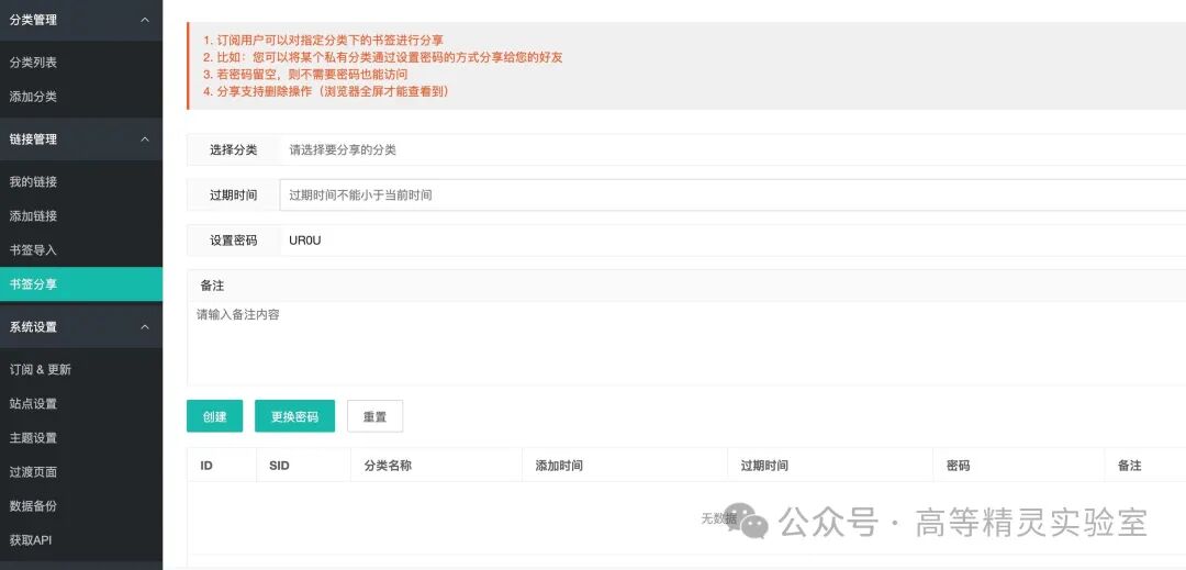 包括链接的增删改查、书签批量导入和书签分享功能,直接看图。