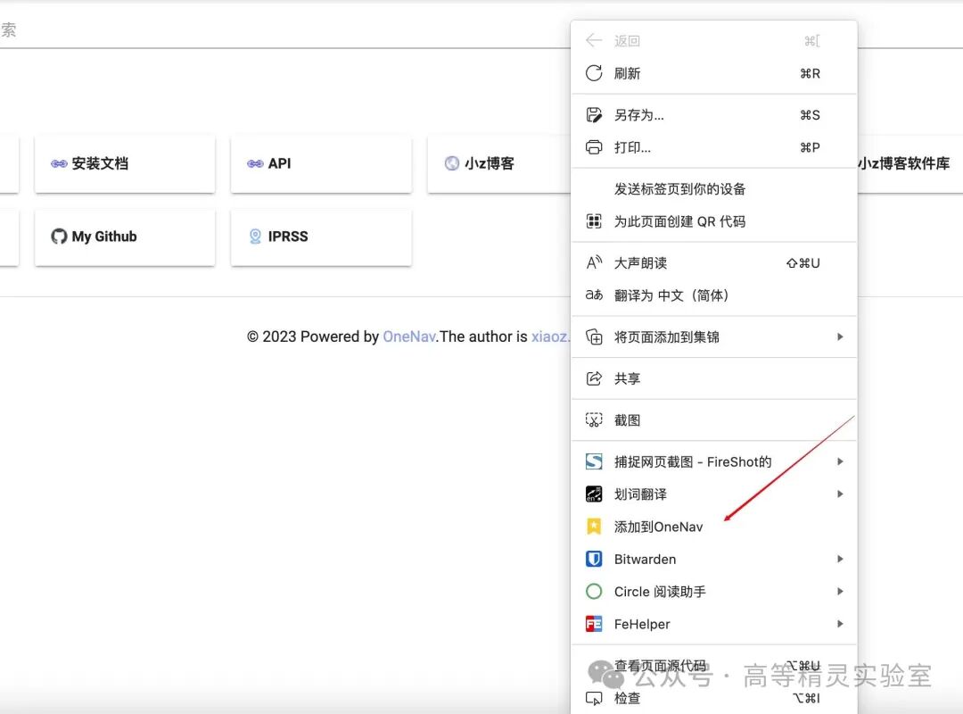 可以打开任意网址,然后鼠标右键 -> 选择添加到OneNav书签,并保存即可。