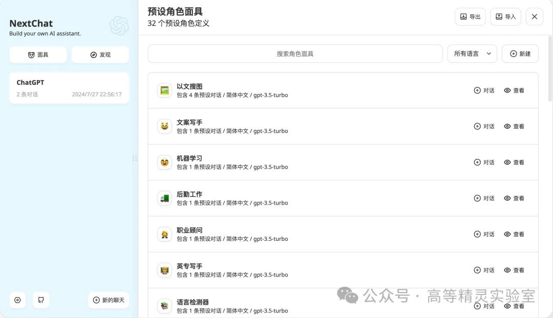 预制角色功能(面具),方便地创建、分享和调试你的个性化对话