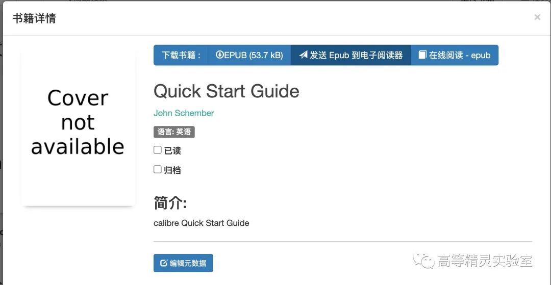 一种是在电脑上安装calibre-web的PC端客户端,在安装目录中找到metadata.db文件拷贝到上面我们在yml中挂载的config文件夹中。
