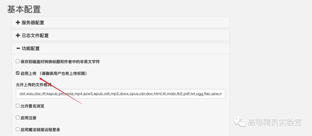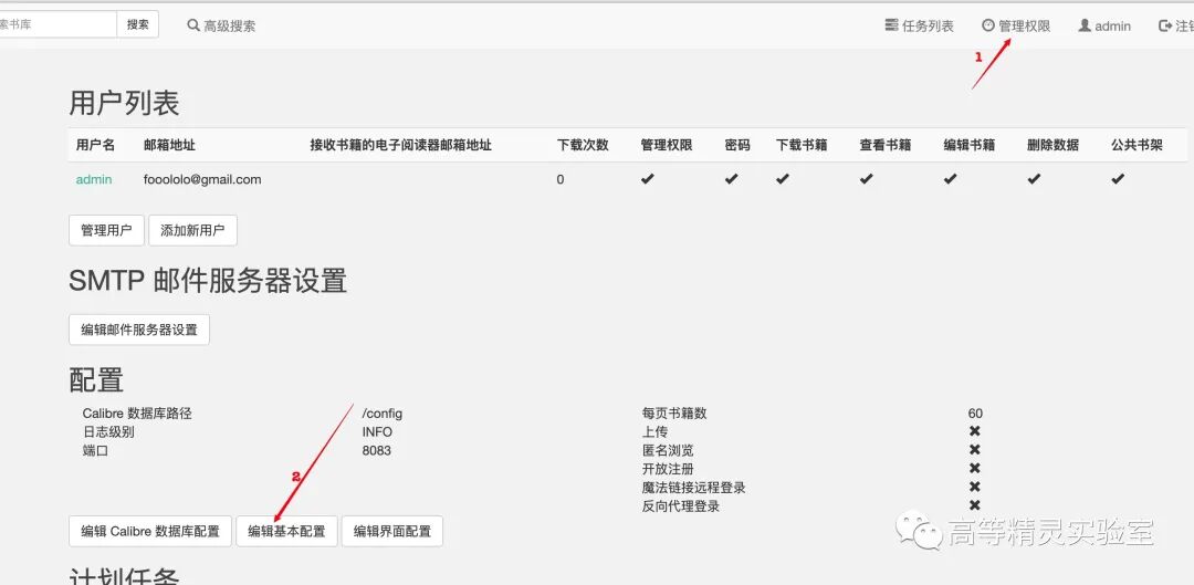 以上完成后,就到了最核心的操作了:添加书籍。但是,你会发现,哪儿都找不到上传书籍的按钮!这是因为calibre-web默认是没有开启上传功能的,需要我们手工开启。