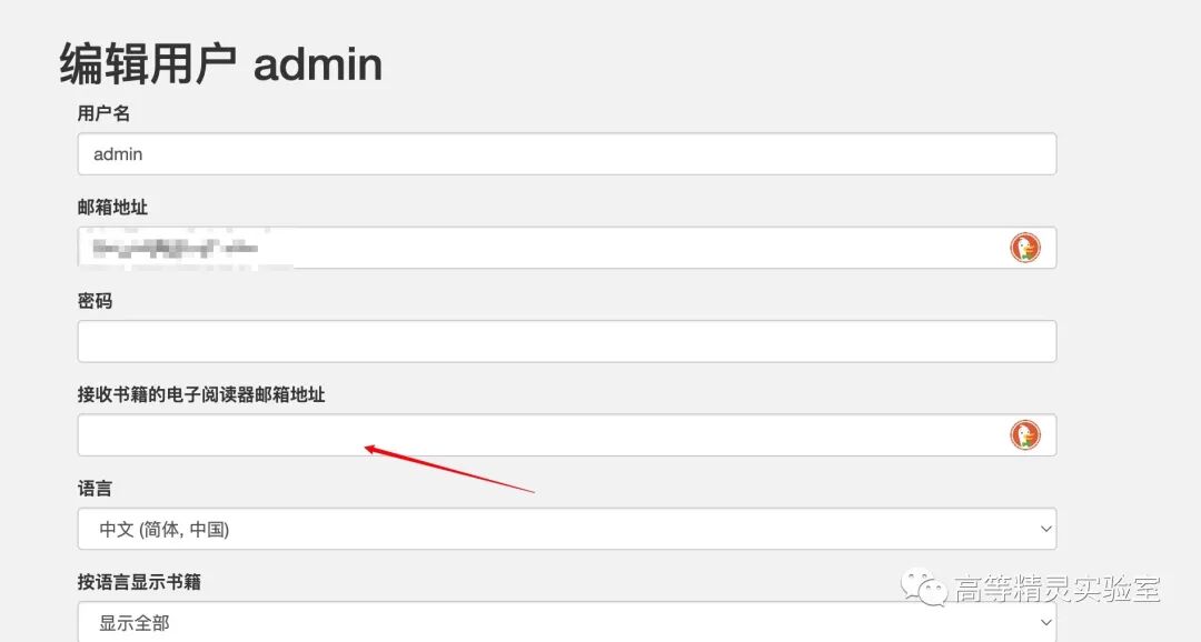 最后,回到calibre-web的管理权限界面,进入用户的编辑页面,将用户的亚马逊邮箱添加到接收书籍的电子阅读器邮箱地址中,就完成了全部设置。