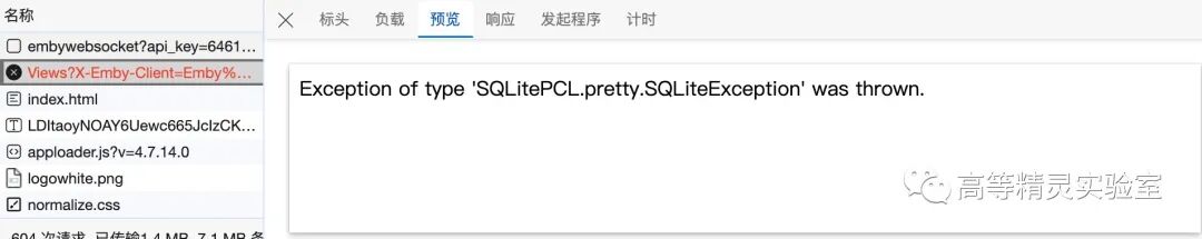 接下来进入到熟系的环节,那就是找出原因。首先当然是请出F12大法,先看看API有没有报错。果然不出所料,接口报错了。看样子SQLite数据库出问题了,但又不知道什么问题。