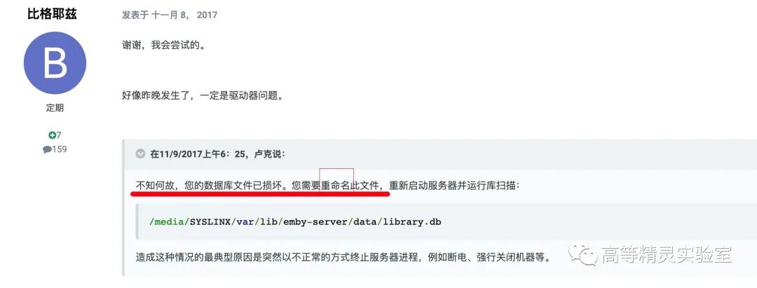 解决方法正如上面的网友说所,需要重置数据库,那么如何重置呢?上文中的Happy2Play在回复中也给了Emby官方的解决方法链接,直接打开,照着操作。