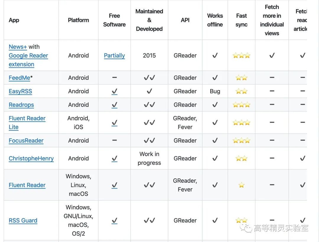 FreshRSS支持通过两种兼容的API从Linux、Android、iOS、Windows和macOS等平台的客户端访问服务器,两种API分别是Google Reader API(最佳)和Fever API(功能有限,效率较低)。下面是兼容FreshRSS的 App 列表,Android端可选的 App 比较多,iOS/macOS 相对较少,Linux 和 Windows 则更少。笔者目前在 iOS/macOS 端使用Netnewswire,完全免费,体验还不错。
