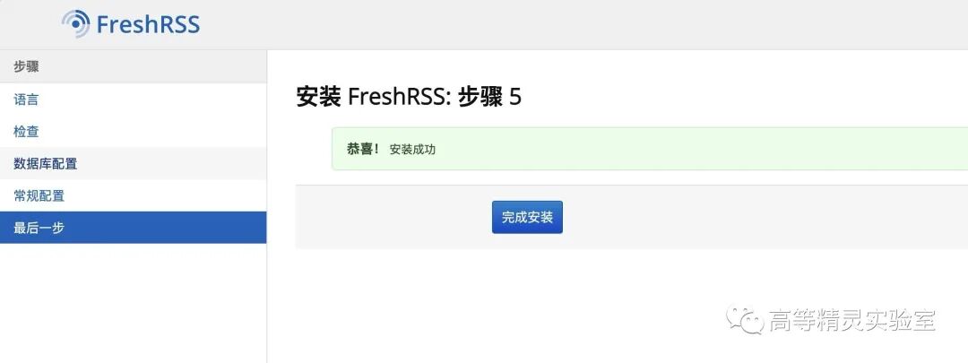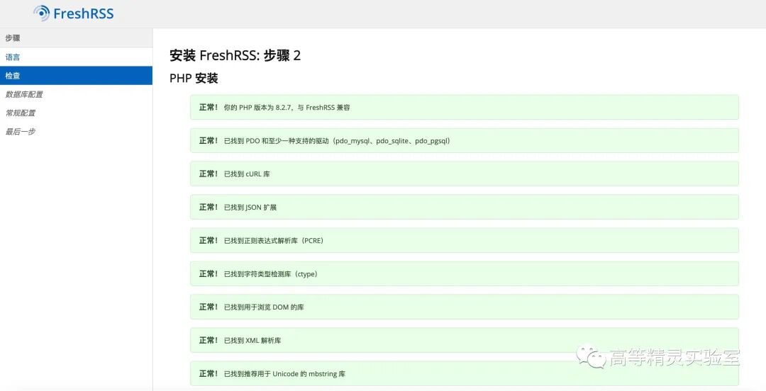 安装完FreshRSS后(安装方式见文末),在浏览器中使用IP+端口打开系统,首次打开需要对系统进行初始化设置。