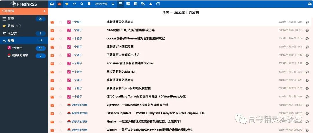 以上服务器的基本设置就完成了,当然还有很多高级功能需要你自行去探索啦。接下来笔者以macOS版的Netnewswire客户端为例,演示如何使用在客户端添加和更新RSS订阅。