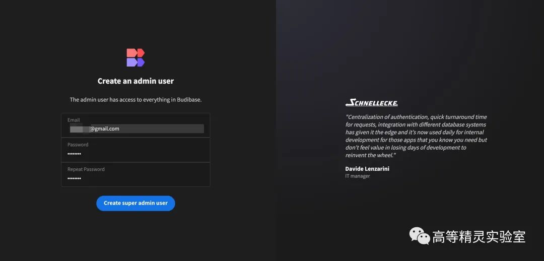 最后,在浏览器访问ip:10080可以开始登录系统,首次进入系统需要先创建一个管理员账号才能继续折腾。