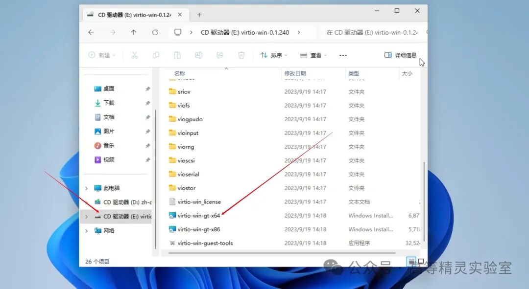凑个十全十美,进入系统后,打开文件管理器中的E盘,找到virtio-win-gt-x64.msi,双击安装它,一路默认下一步就行。