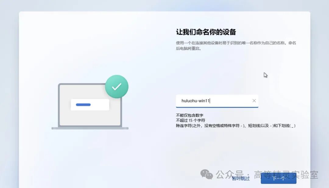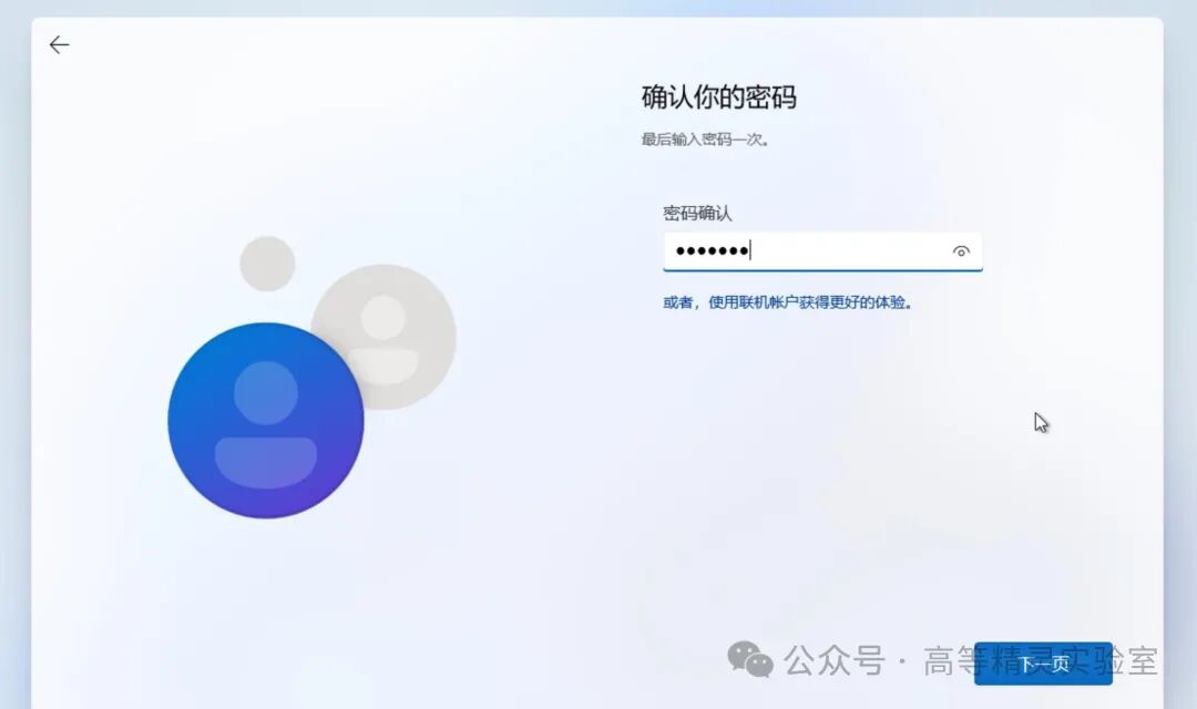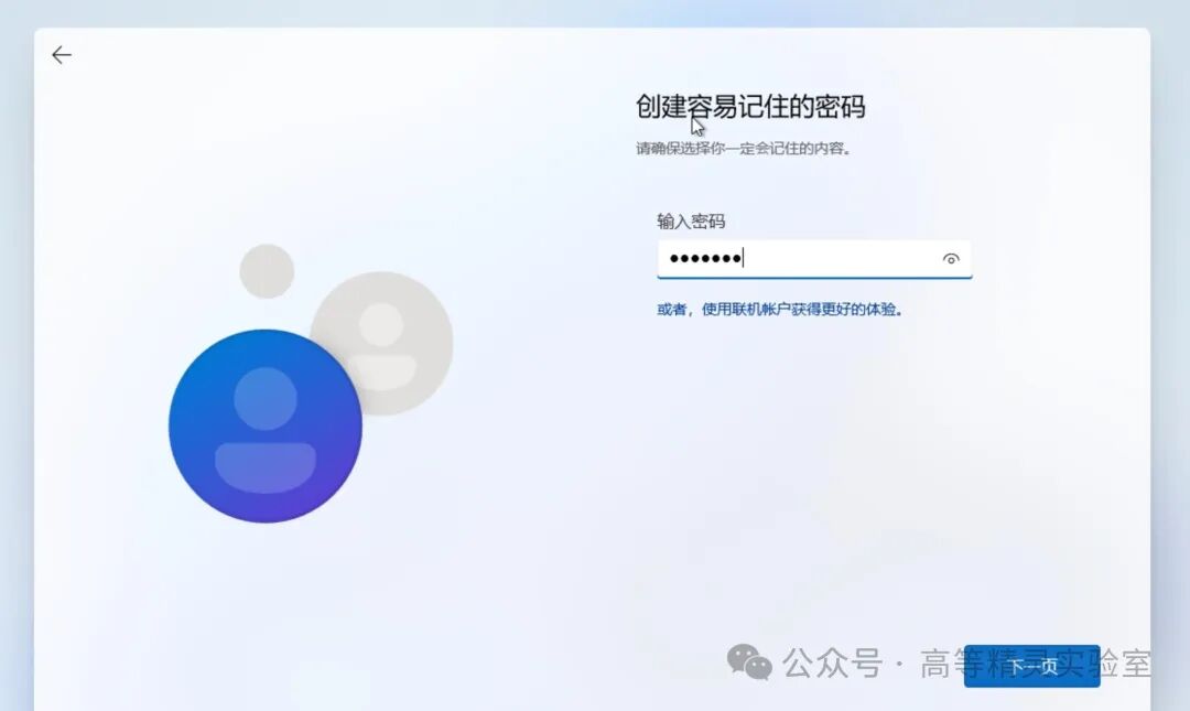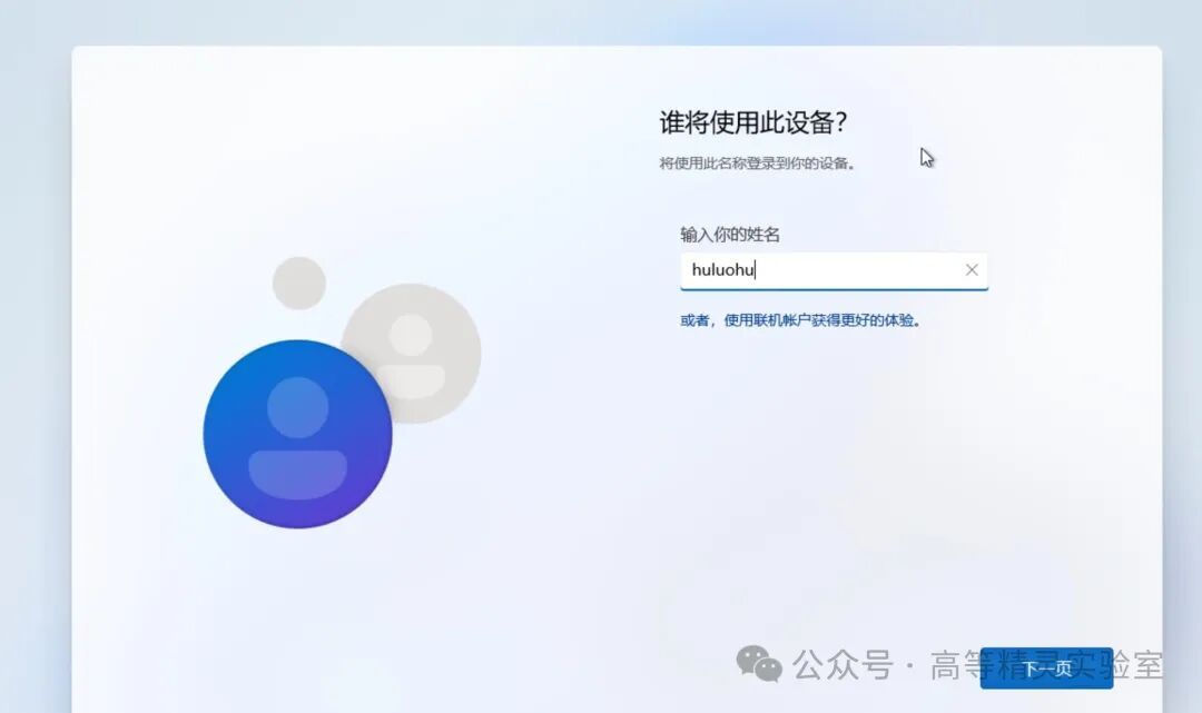 如果一直无法联网,系统会自动转换到使用本地账号登录。这时候会要求你输入用户名,继续点击下一页。