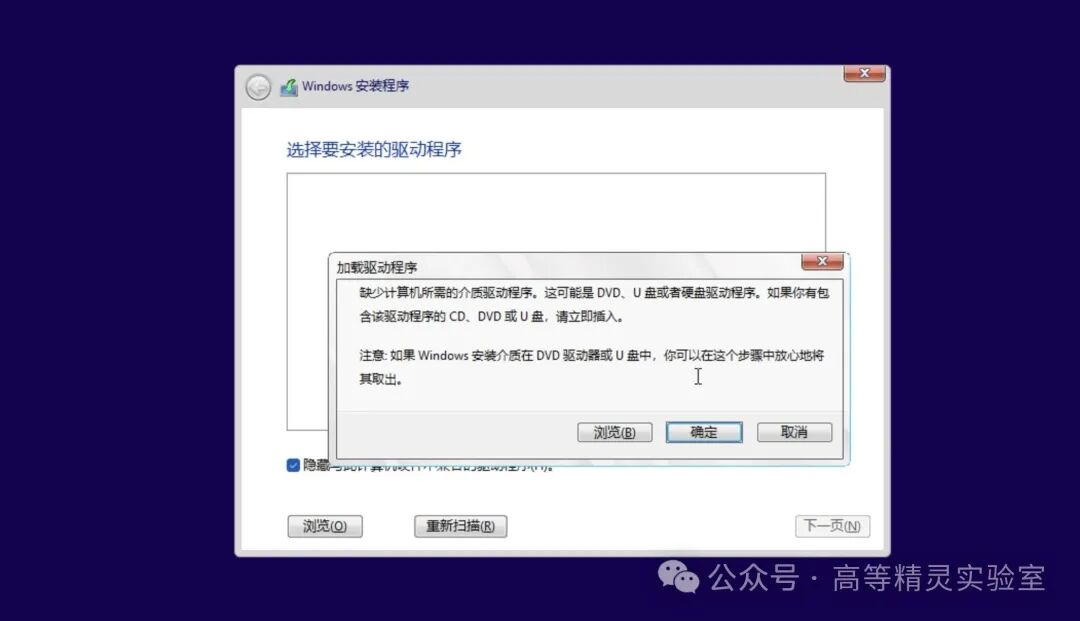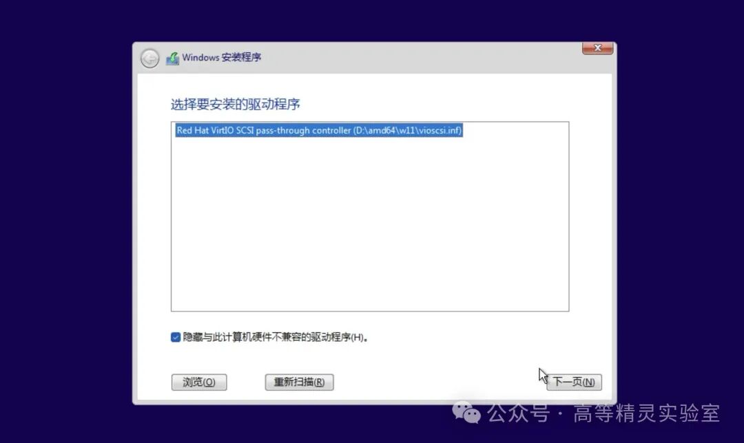 这一步是需要安装磁盘驱动程序,点击浏览。这一步很重要,可别直接跳过了!