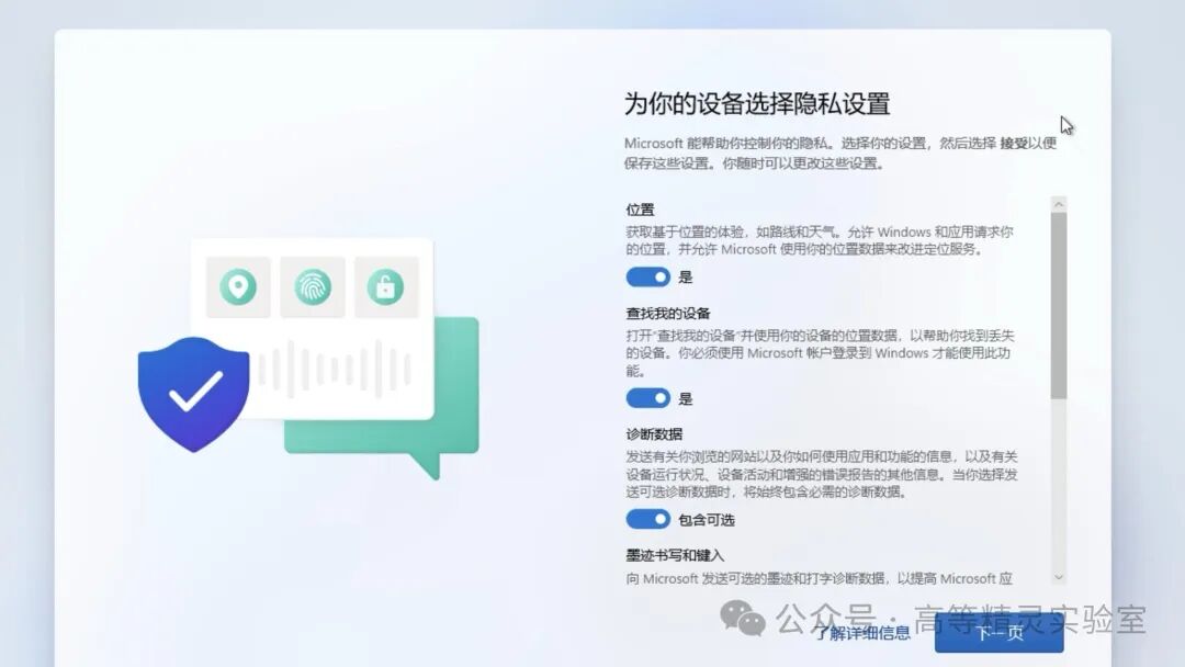 8、创建本地账号和隐私设置