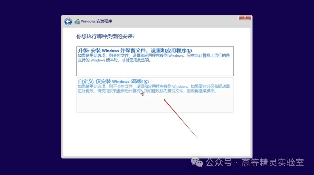 接下来选择哪种安装类型,选自定义!