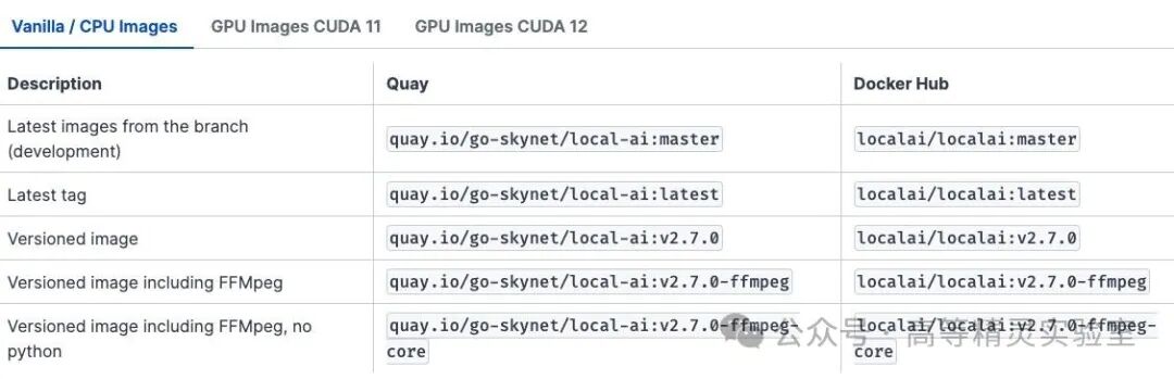 LocalAI提供了多种镜像来支持不同的环境。这些镜像可以在quay.io和Docker Hub上找到。