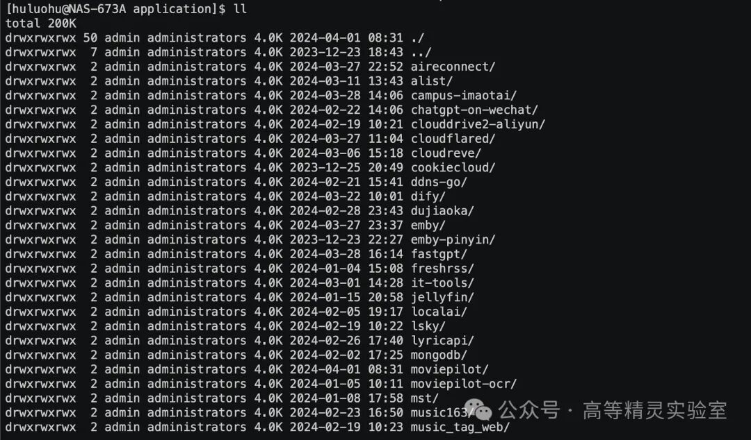 在威联通上安装完Container Station套件后,就会在/share/Container下面自动创建一个container-station-data文件夹,用来保存套件相关的配置文件和工具库等。我们使用SSH登录威联通以后,直接使用下面命令切换到这个目录下面的application。