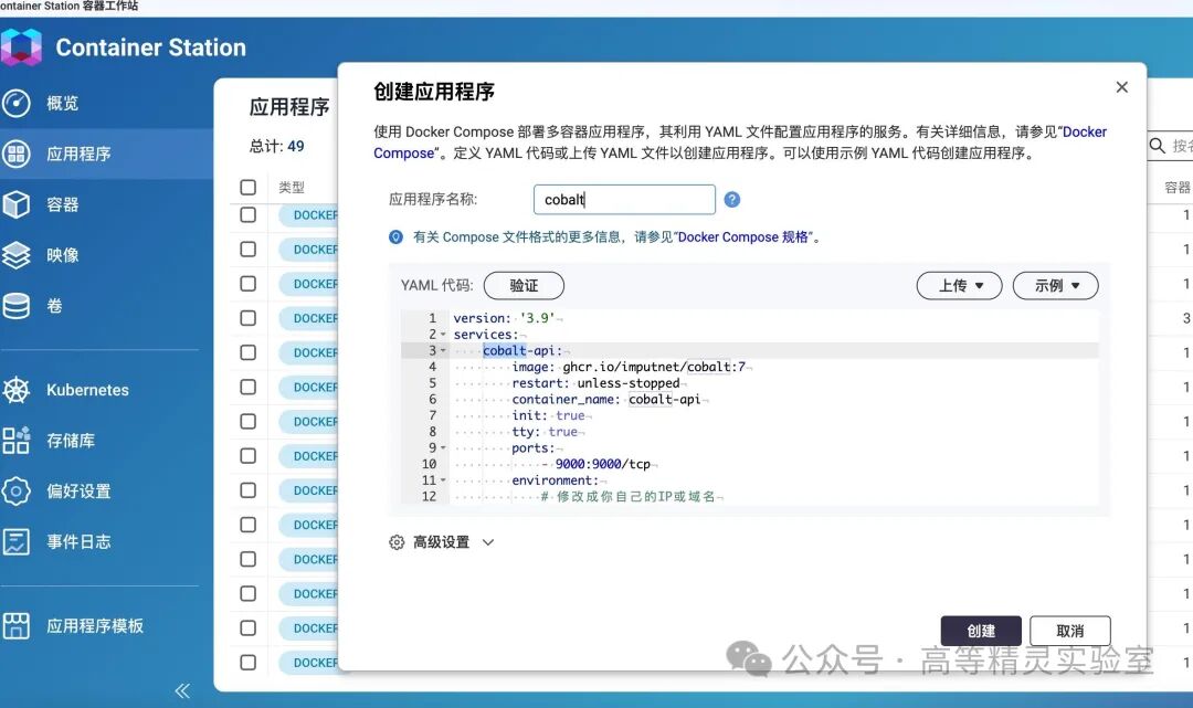如果你使用NAS的容器套件,可以直接在图形界面中操作,例如在威联通中可以将compose.yml中的内容直接粘贴在创建应用程序中即可。
